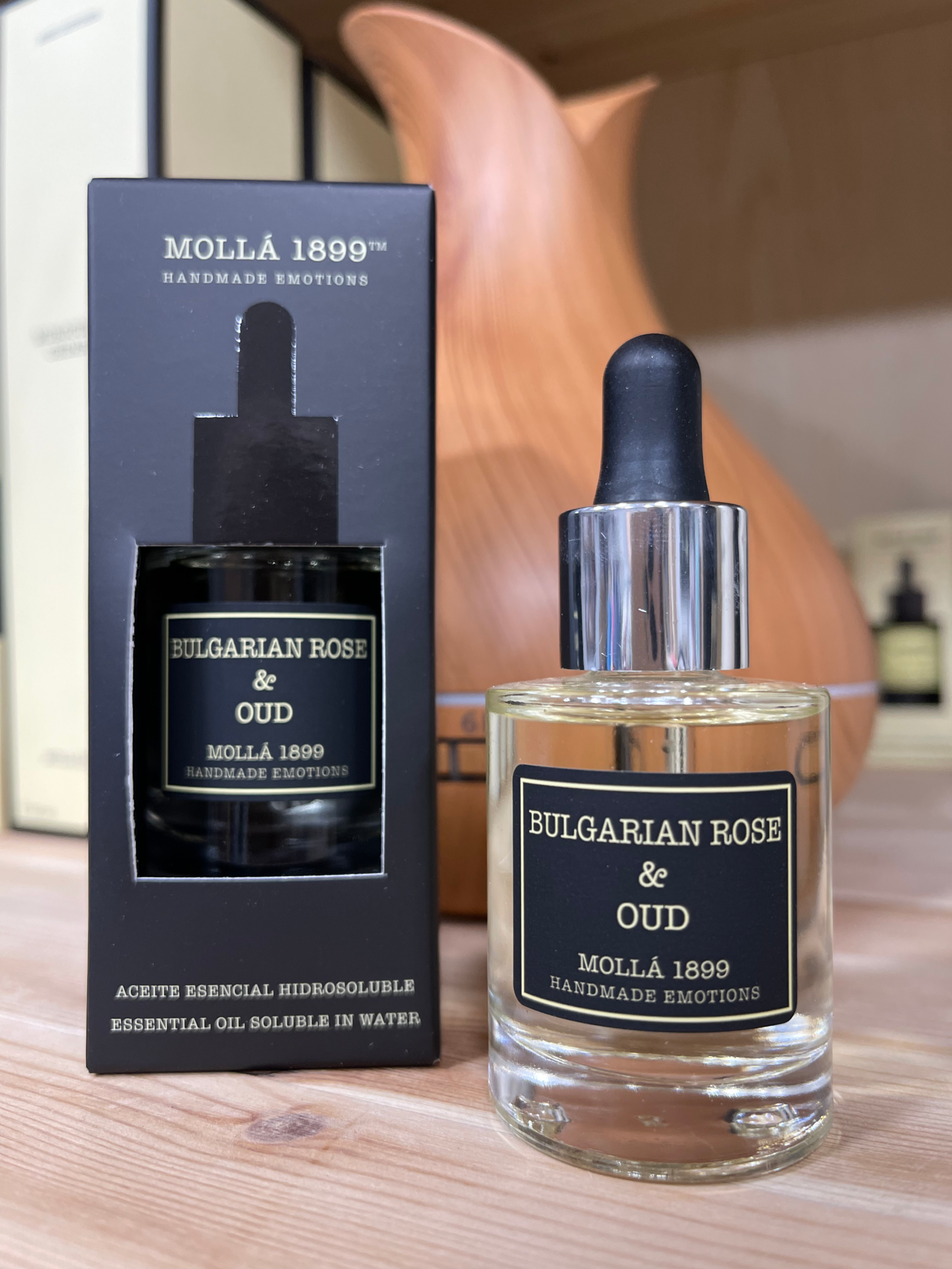 Fragancia de aroma floral dulzona. La rosa más oscura de Damasco, rica y aterciopelada se envuelve en madera de Oud ahumada. Los aceites esenciales hidrosolubles se disuelven en agua y los podemos utilizar tanto en los difusores de aroma por ultrasonidos, -también denominados brumizadores-, humidificadores y también en los quemadores con lamparilla de vela tradicional u hornitos. Su cómodo formato con gotero dosificador permite agregar la cantidad deseada. La composición de las fragancias consiguen la difusión del aroma constante, y gracias a su método de evaporación la duración de la fragancia en el ambiente será duradera.