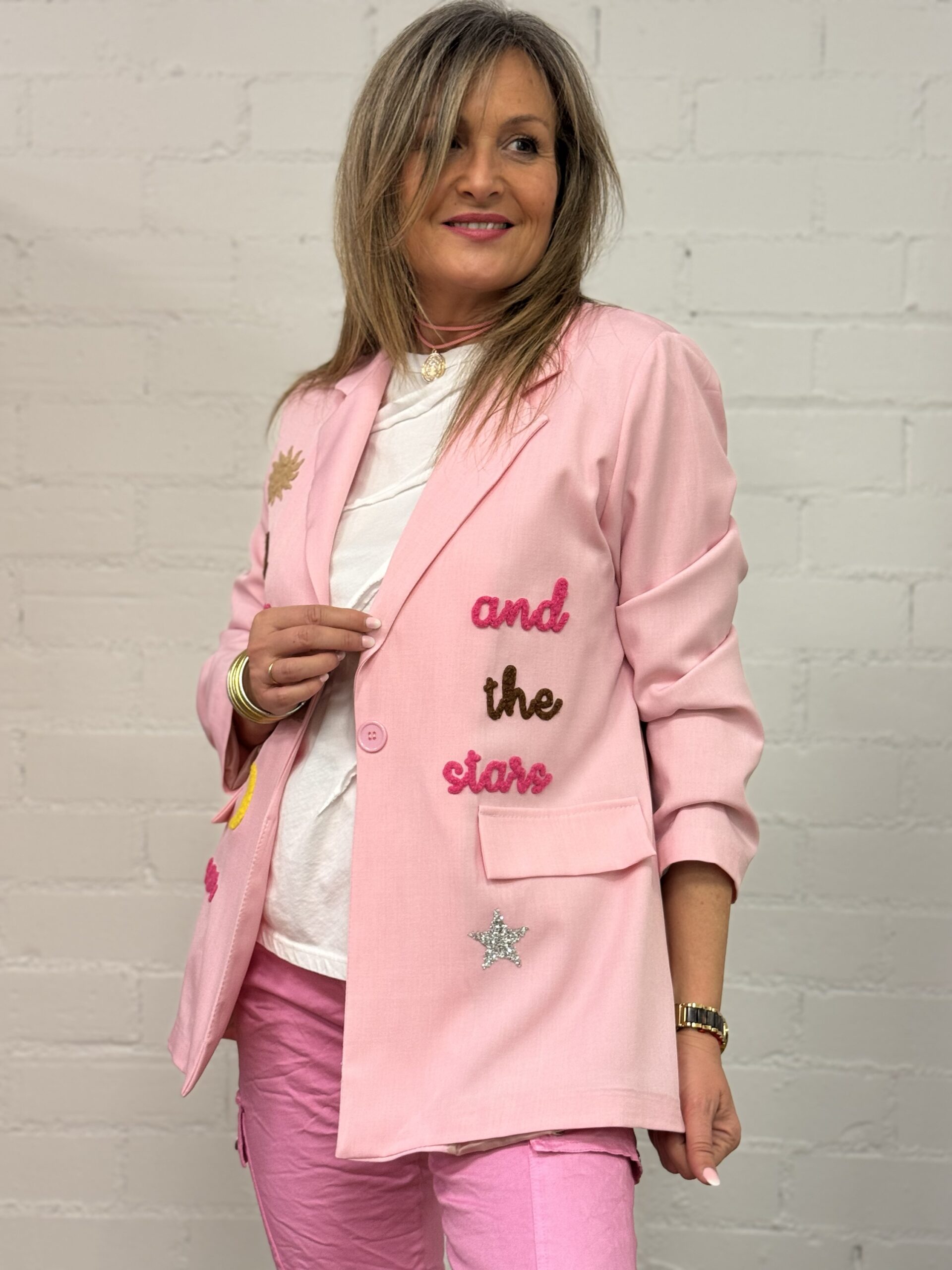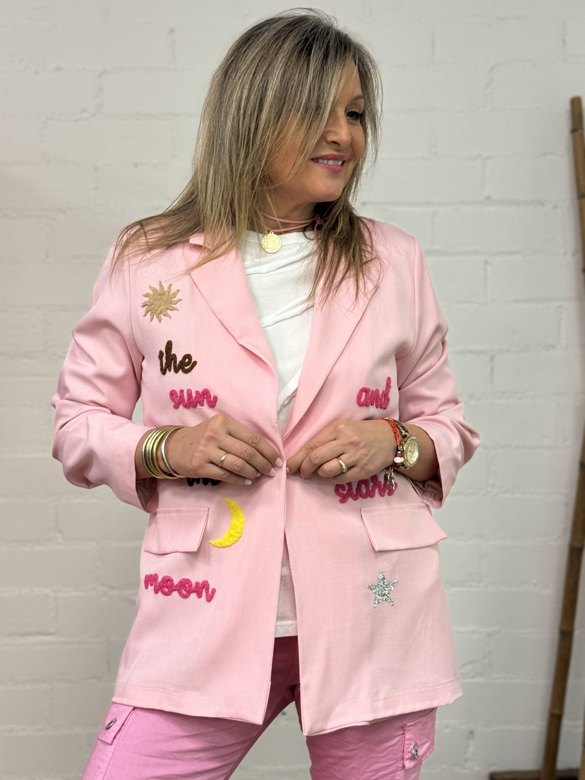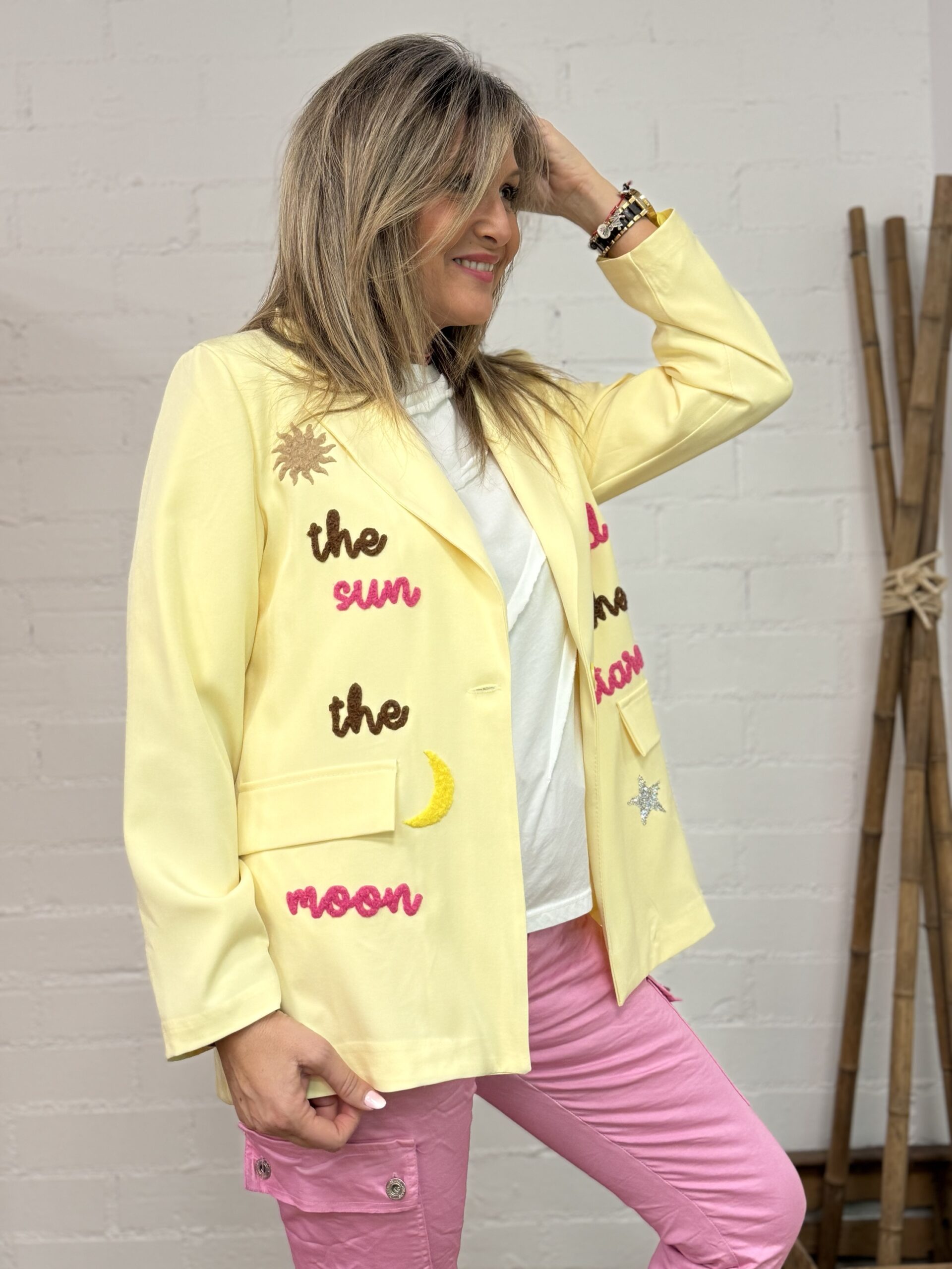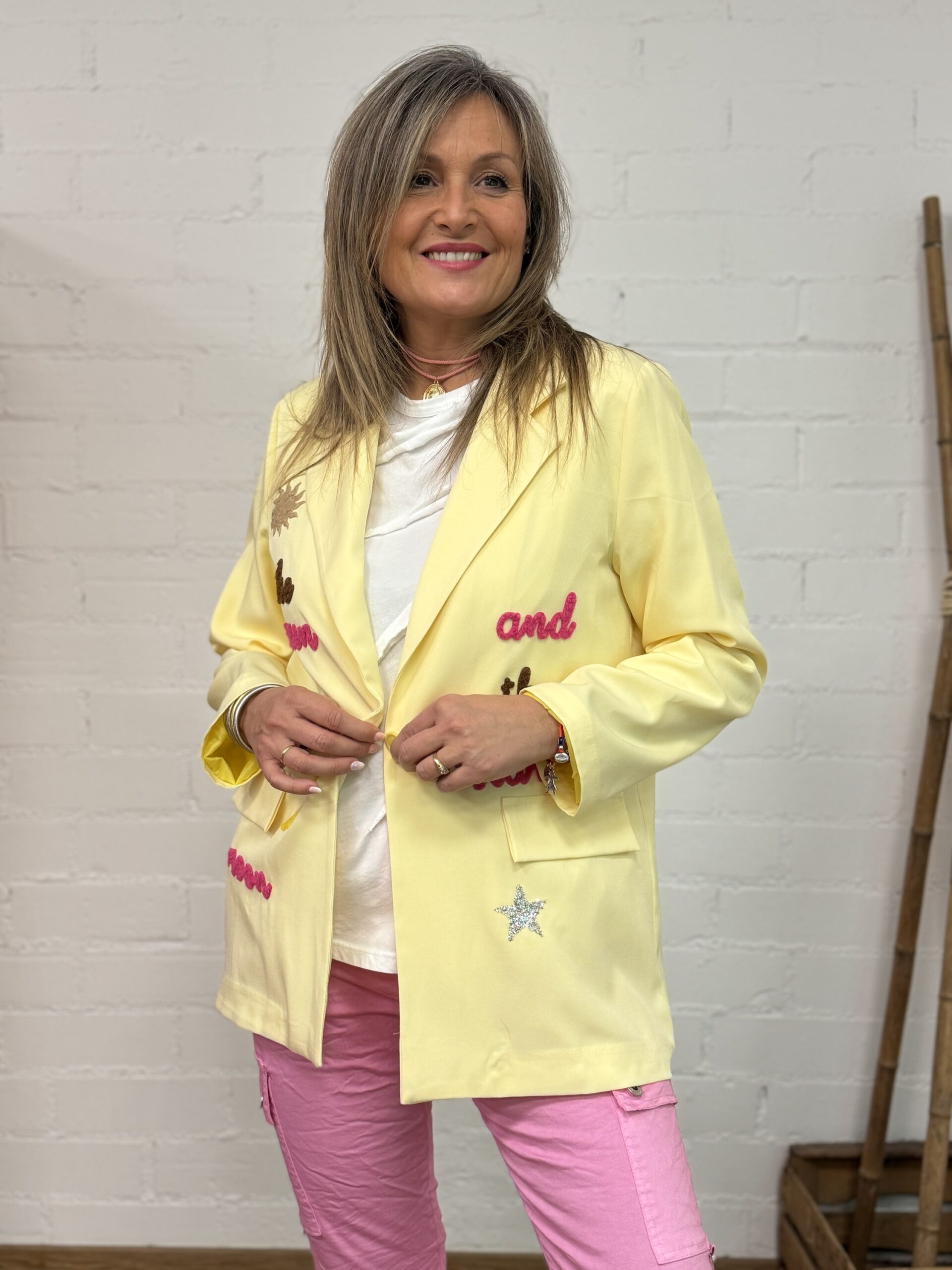 Esta blazer es la prenda perfecta para aportar un toque especial y luminoso a tus looks de temporada. Con manga larga y forro interior, ofrece una estructura cómoda y cuidada, ideal para el día a día o para ocasiones más especiales.