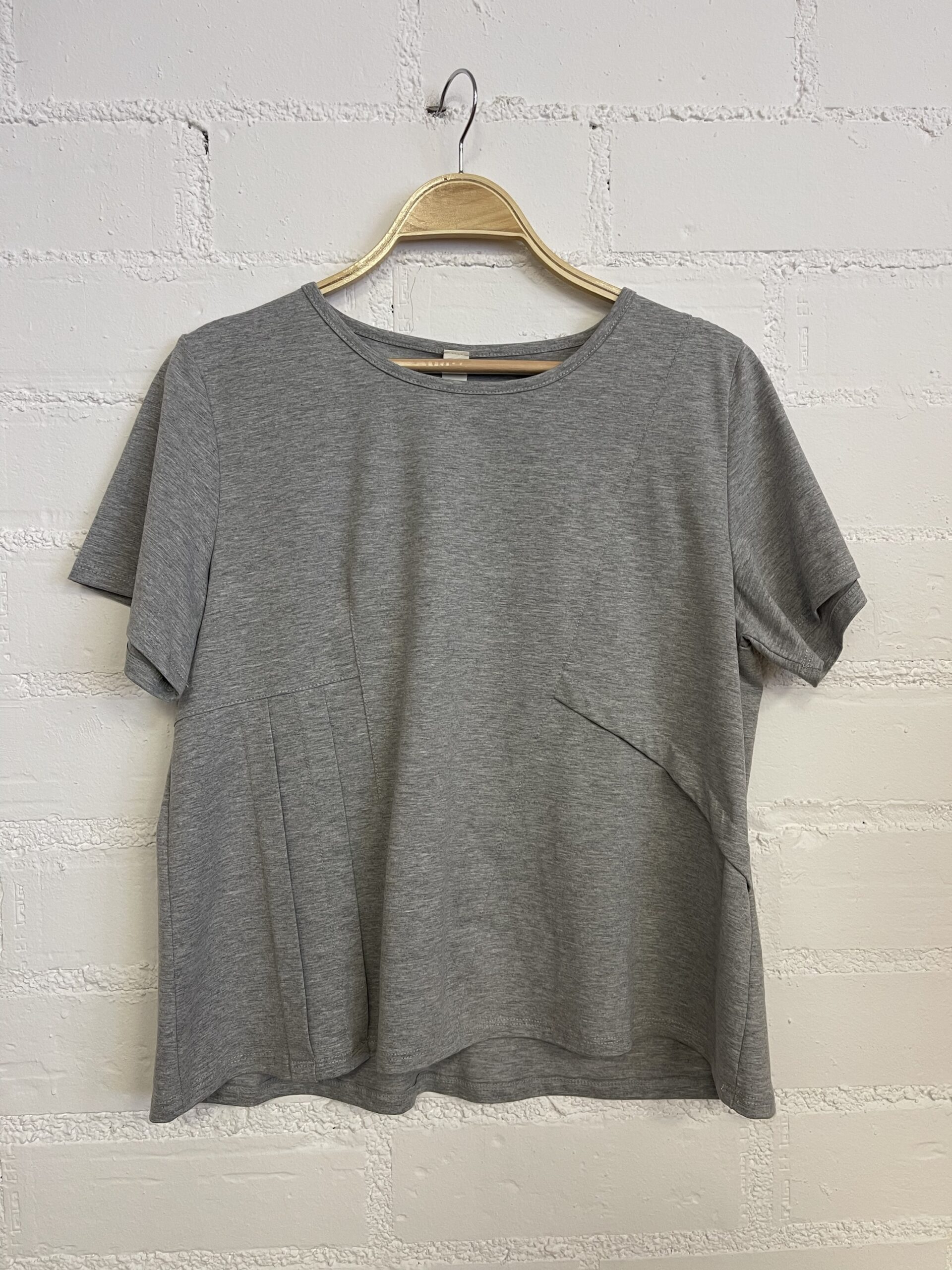Camiseta de manga corta con corte recto y cuello redondo, diseñada para quienes buscan una prenda cómoda pero con un punto especial. Su diseño se distingue por los detalles de costuras vistas y pliegues en la parte frontal, que aportan textura, movimiento y un acabado más trabajado sin perder la sencillez.