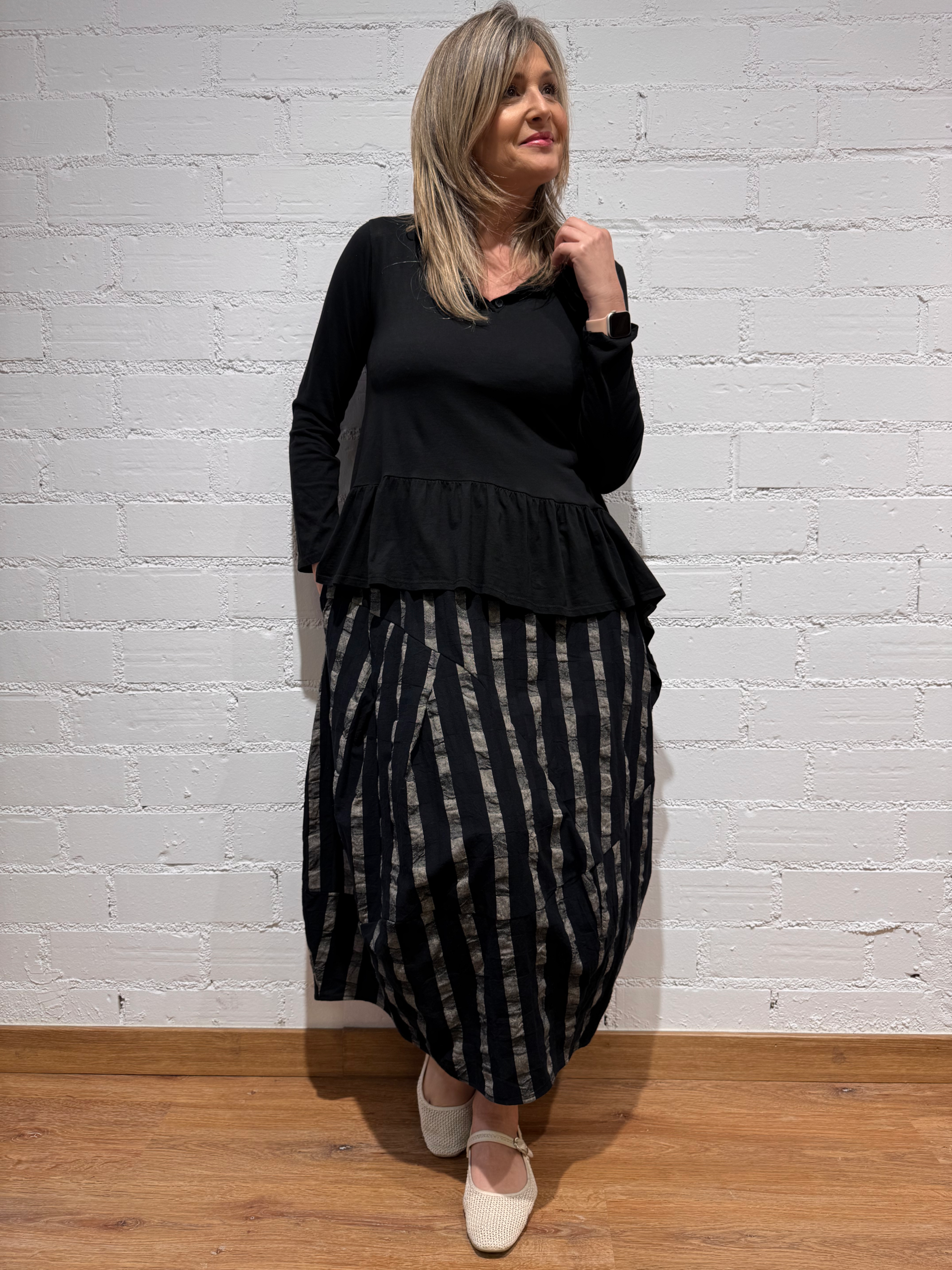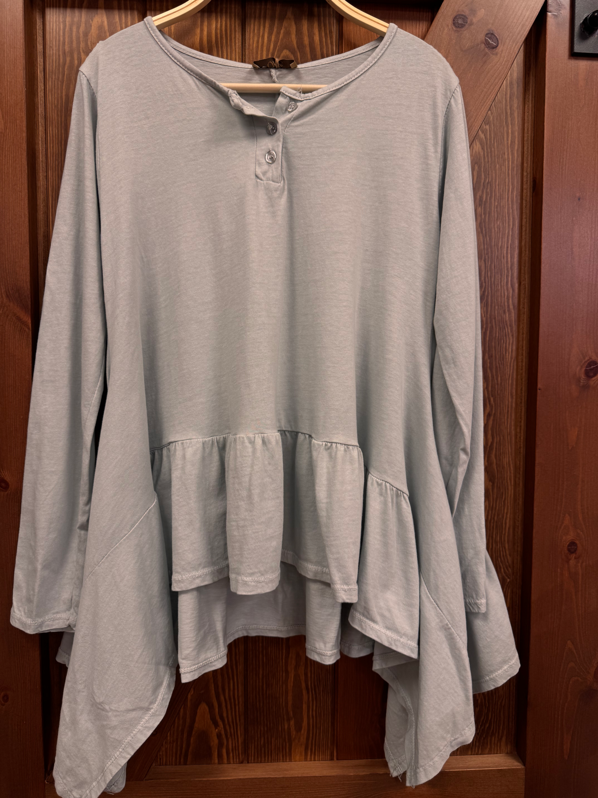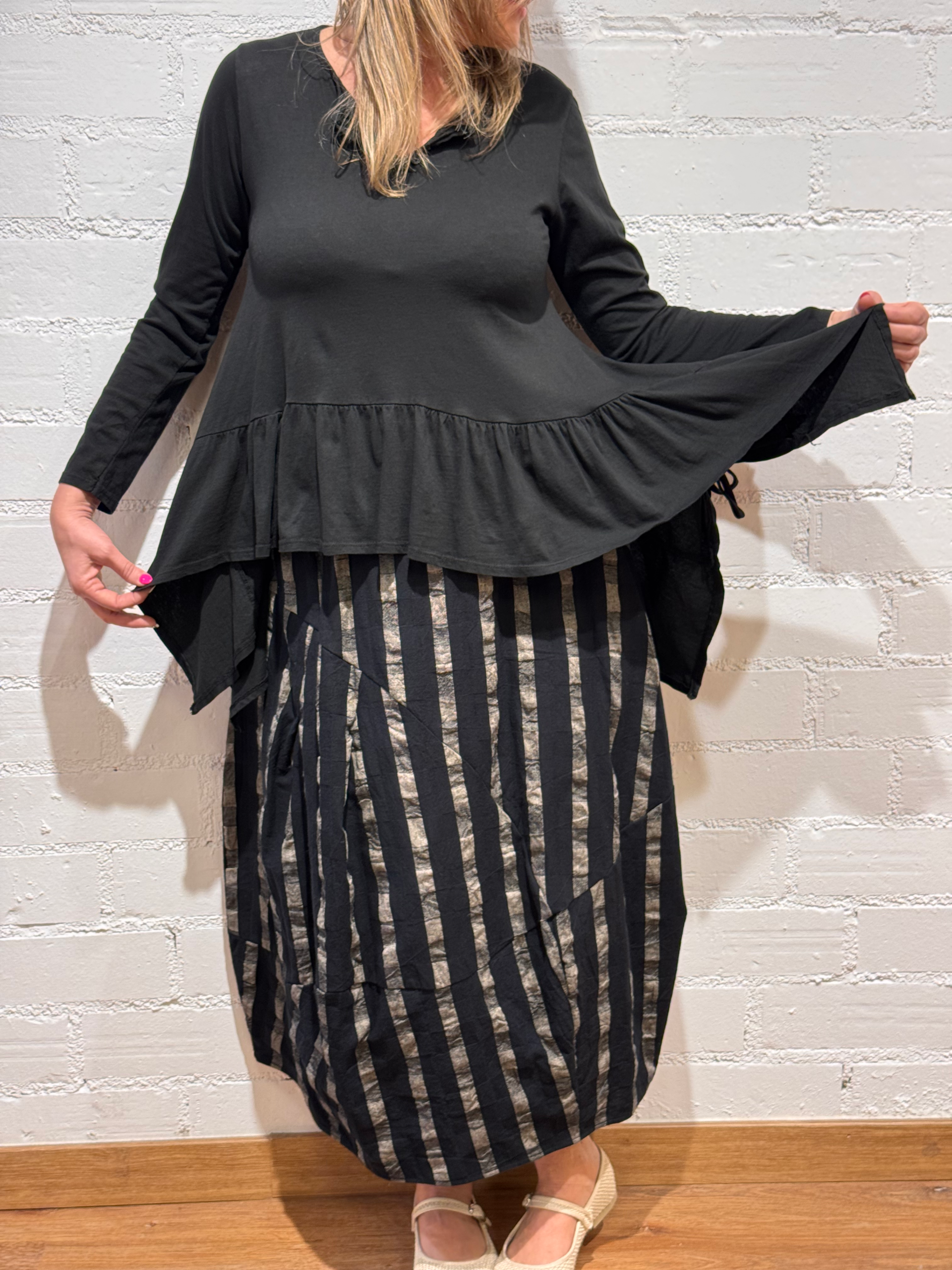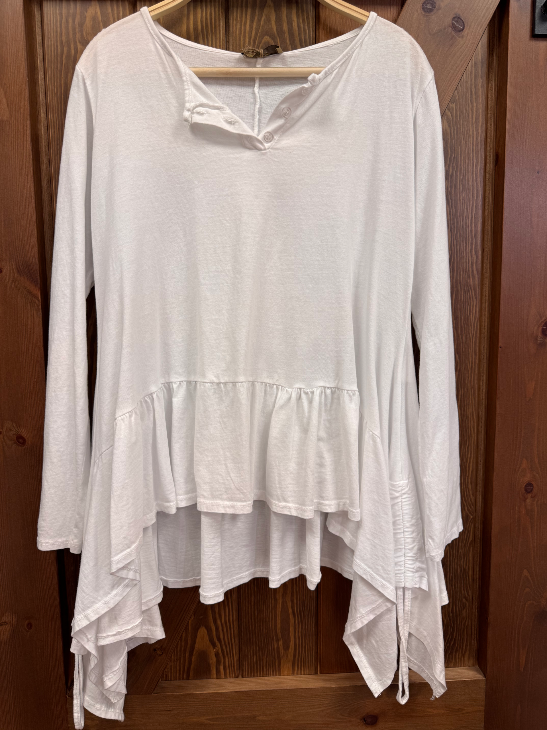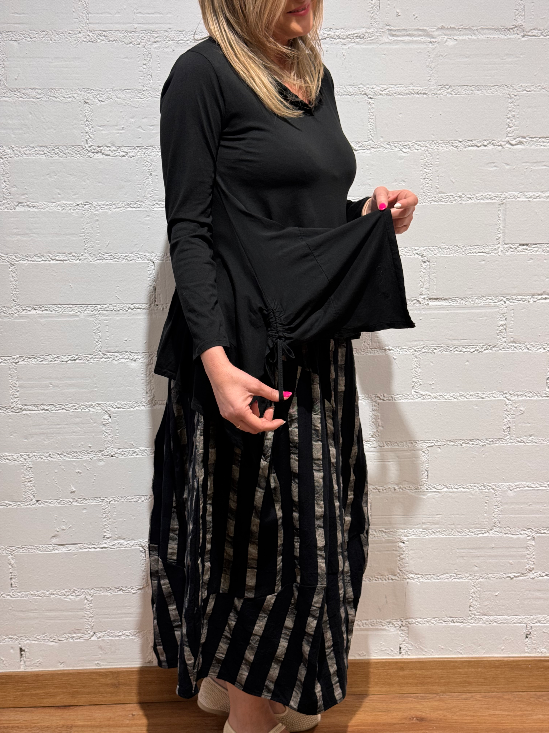 Camiseta asimétrica con volante en el bajo y cintas en los laterales para ajustar el largo