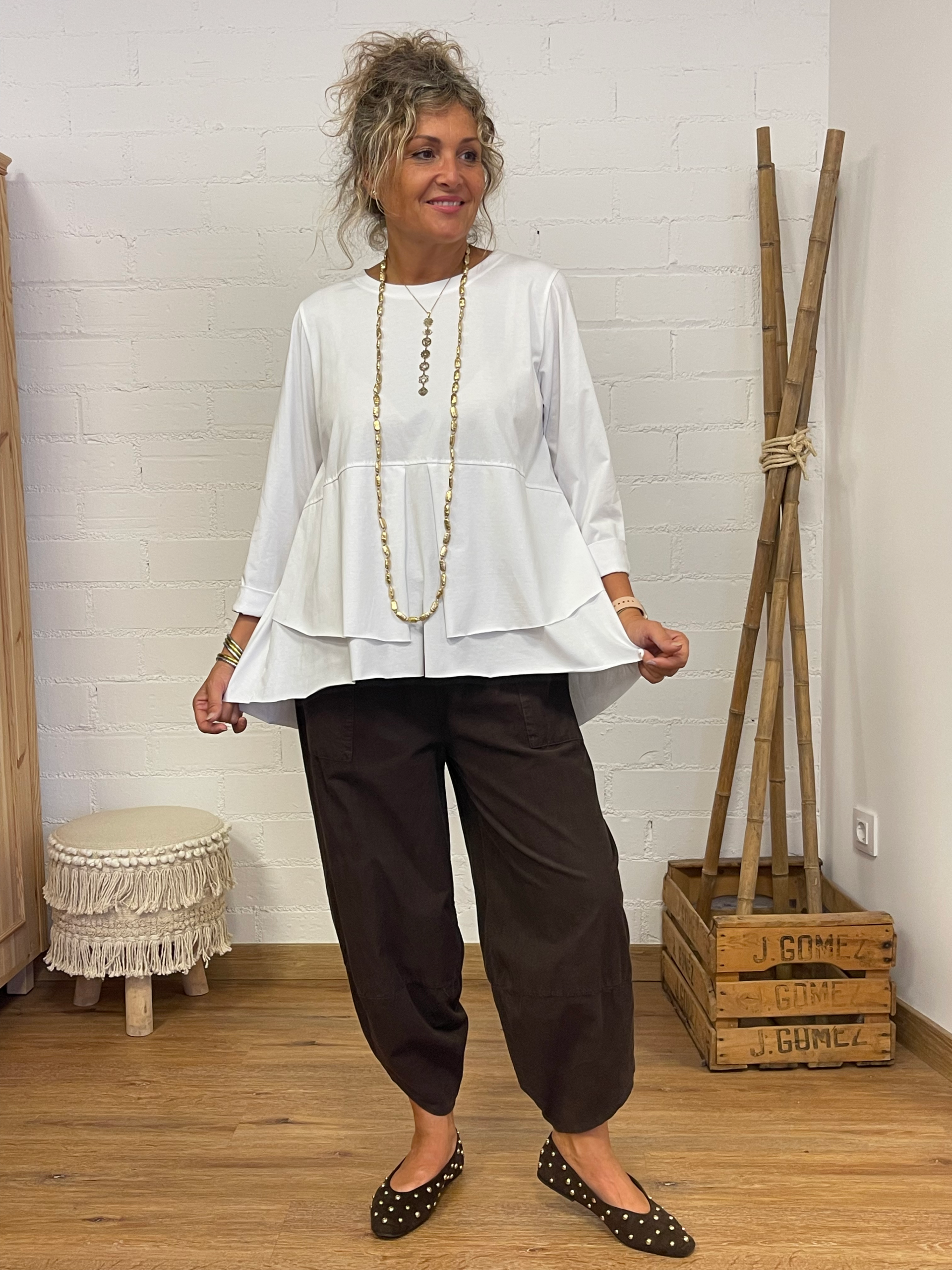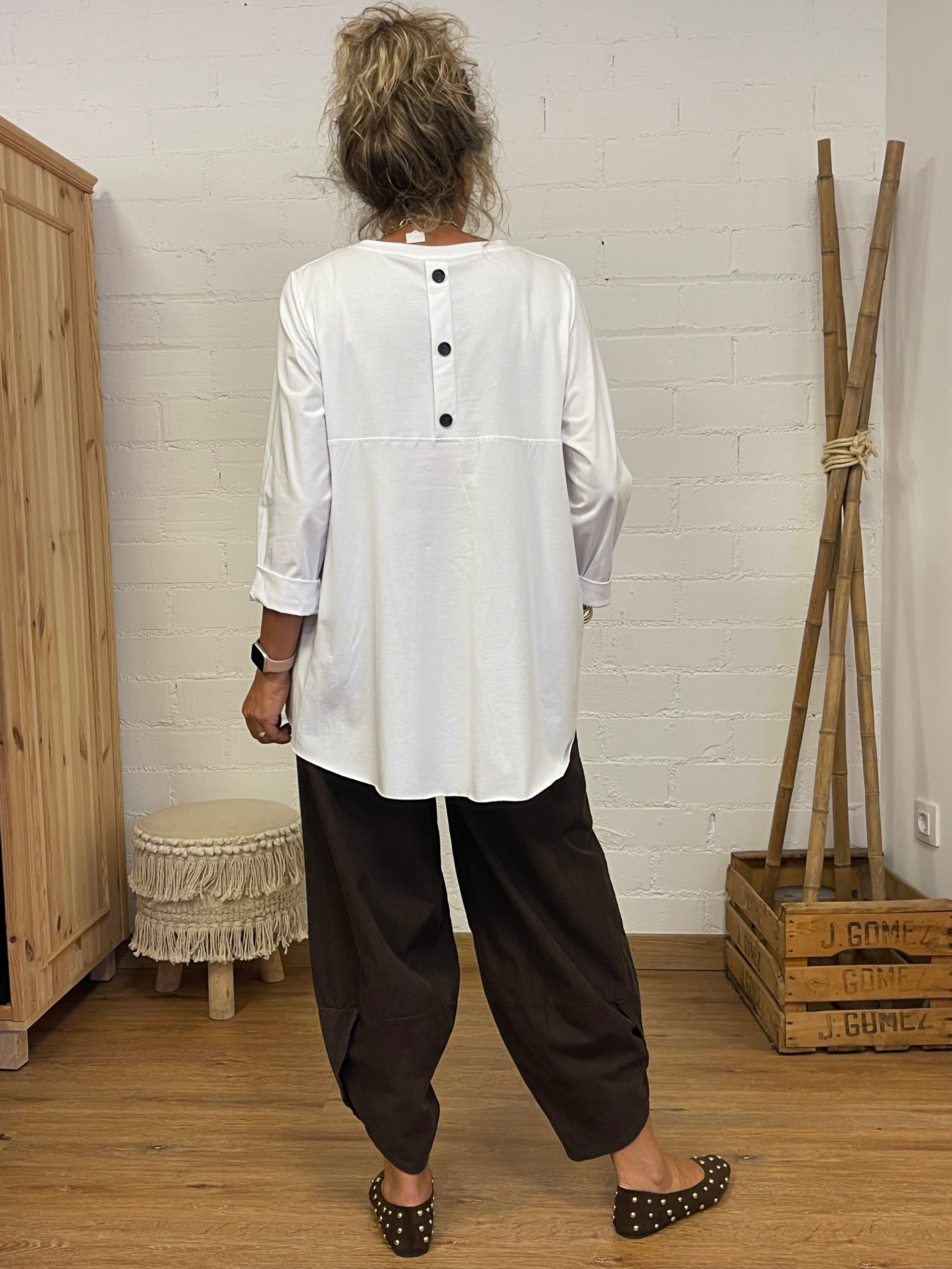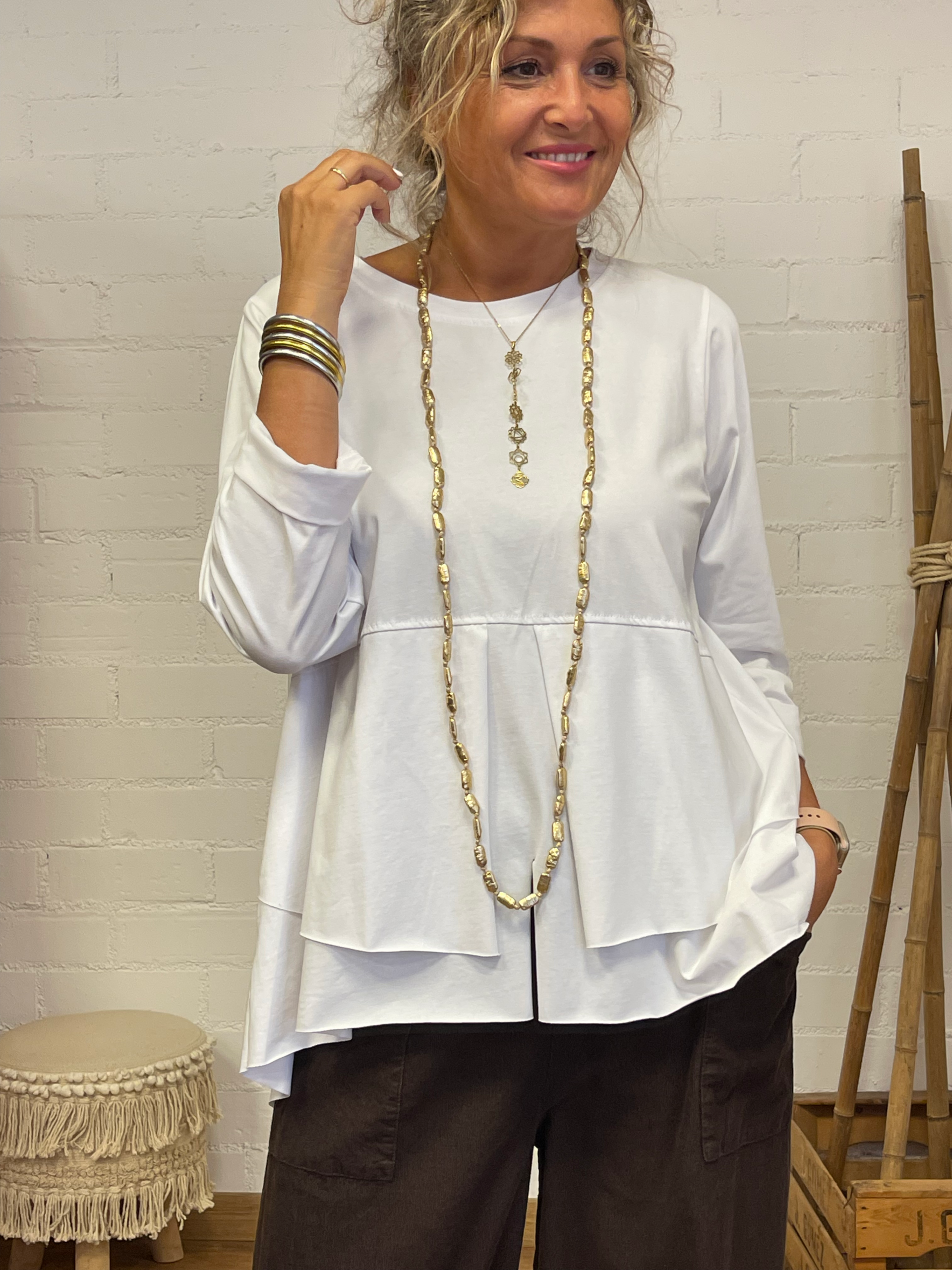 Versátil y cómoda, es la prenda ideal para combinar con tus vaqueros favoritos o faldas midi, añadiendo un aire fresco y contemporáneo a cualquier outfit.