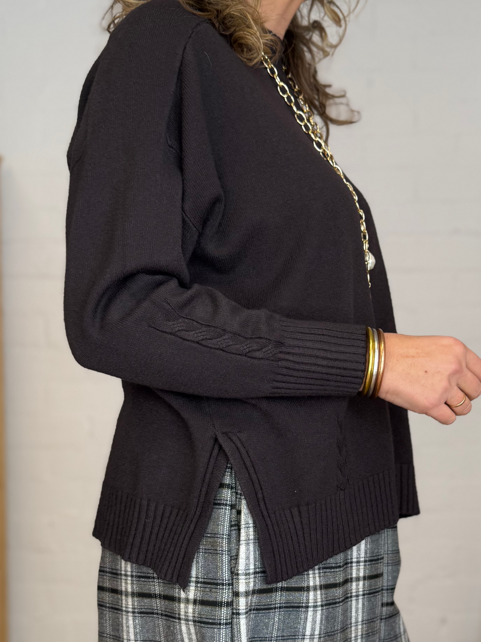 Los puños en las mangas aseguran un ajuste perfecto, y el detalle trenzado en los bajos de la manga y de la pieza añade un acabado delicado y distintivo que eleva cualquier look. Ideal para combinar con jeans, pantalones de vestir o faldas, convirtiéndose en un básico con carácter.