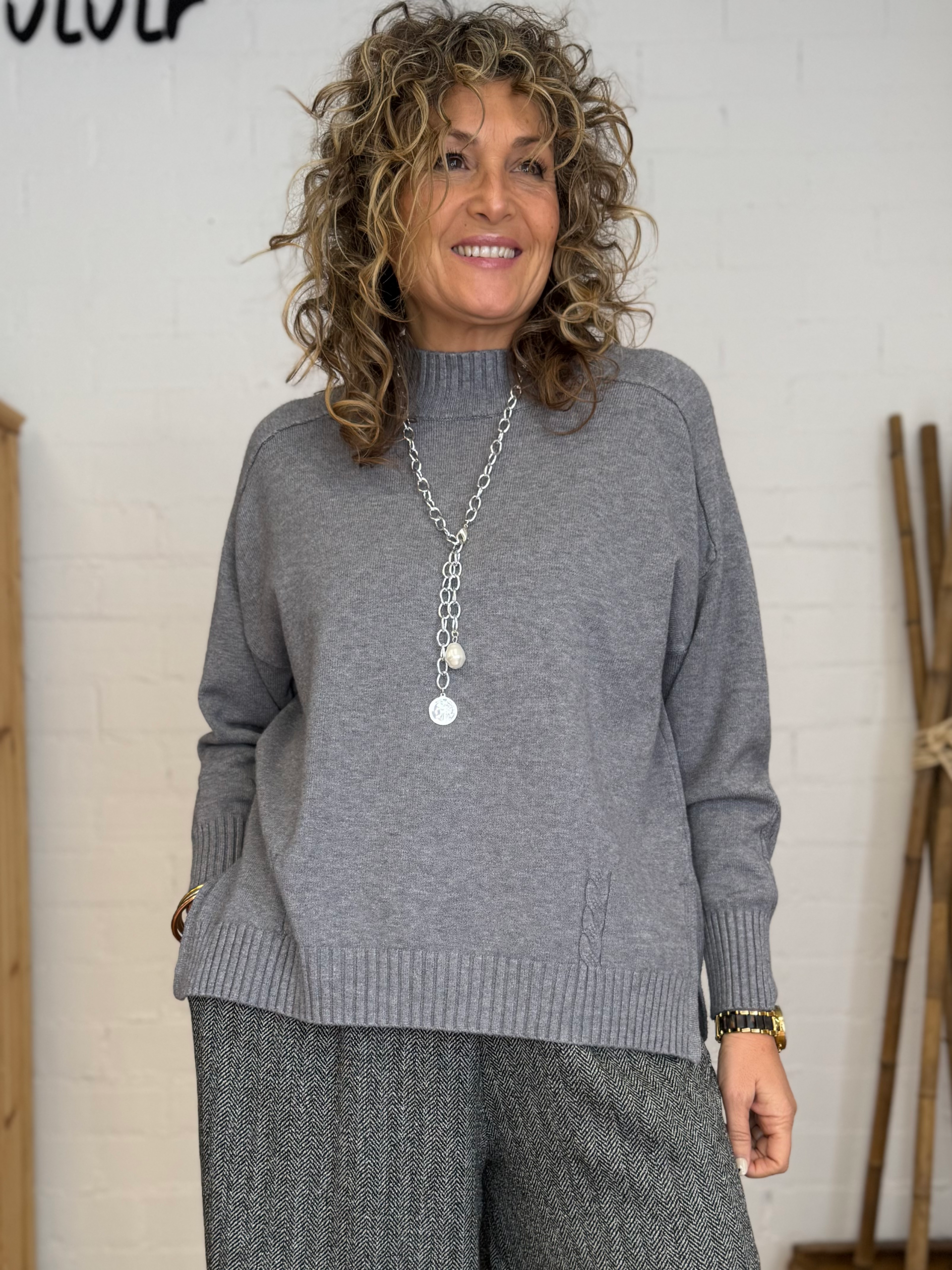 Este jersey de punto combina estilo y comodidad en una prenda versátil. Su manga larga y cuello Perkins ofrecen abrigo y un acabado elegante, mientras que las aperturas en los laterales del bajo aportan movimiento y un toque contemporáneo.