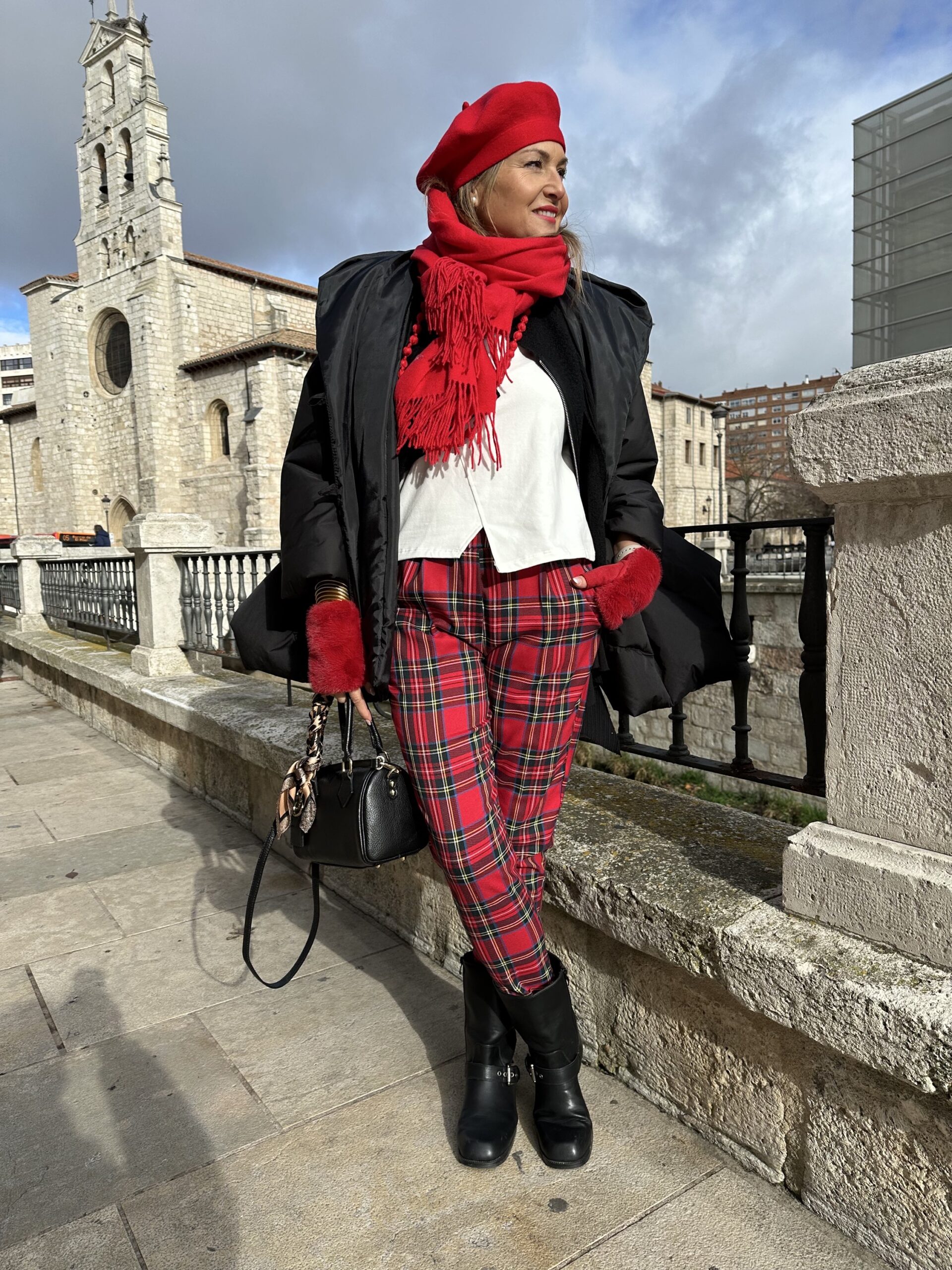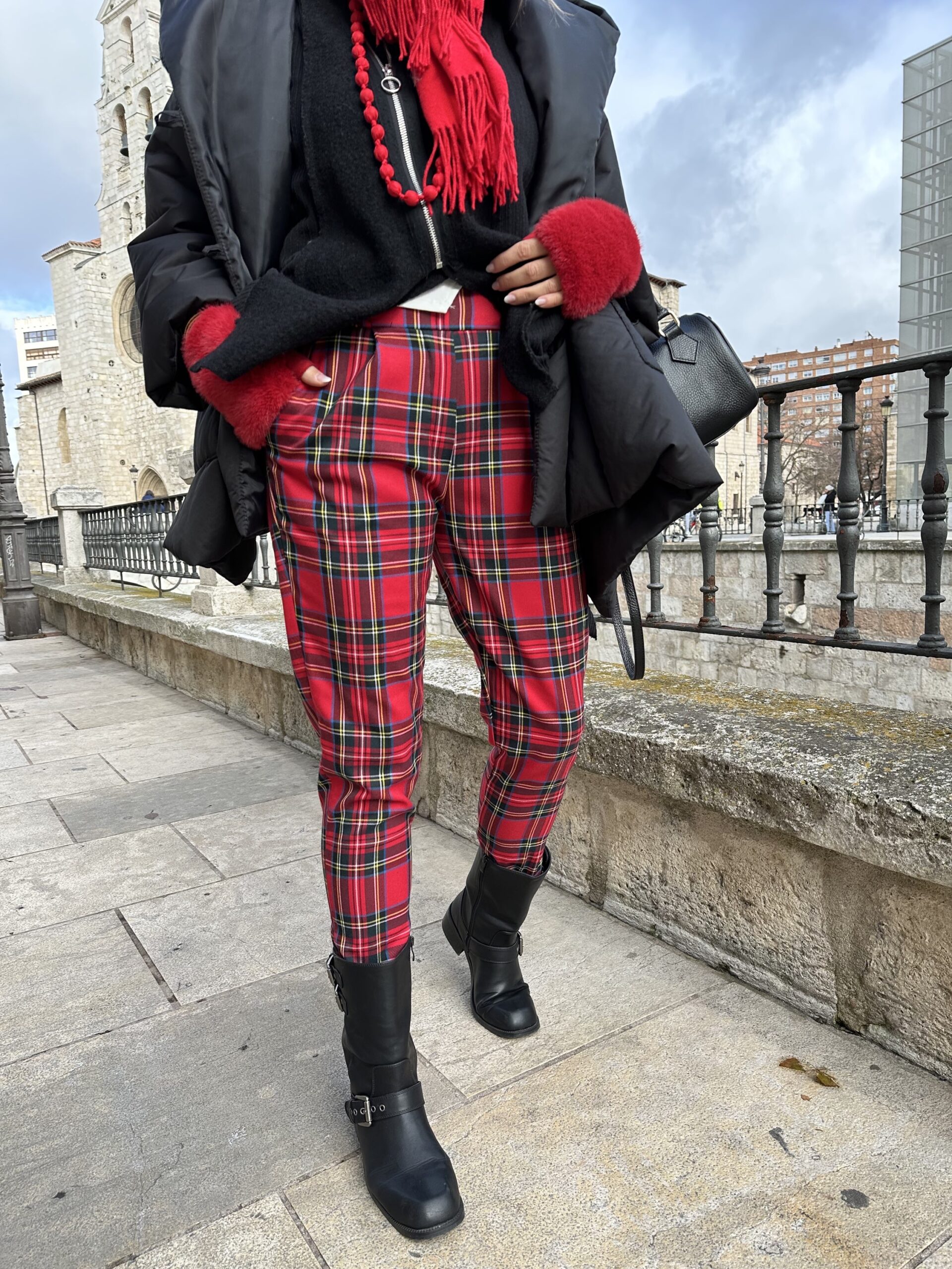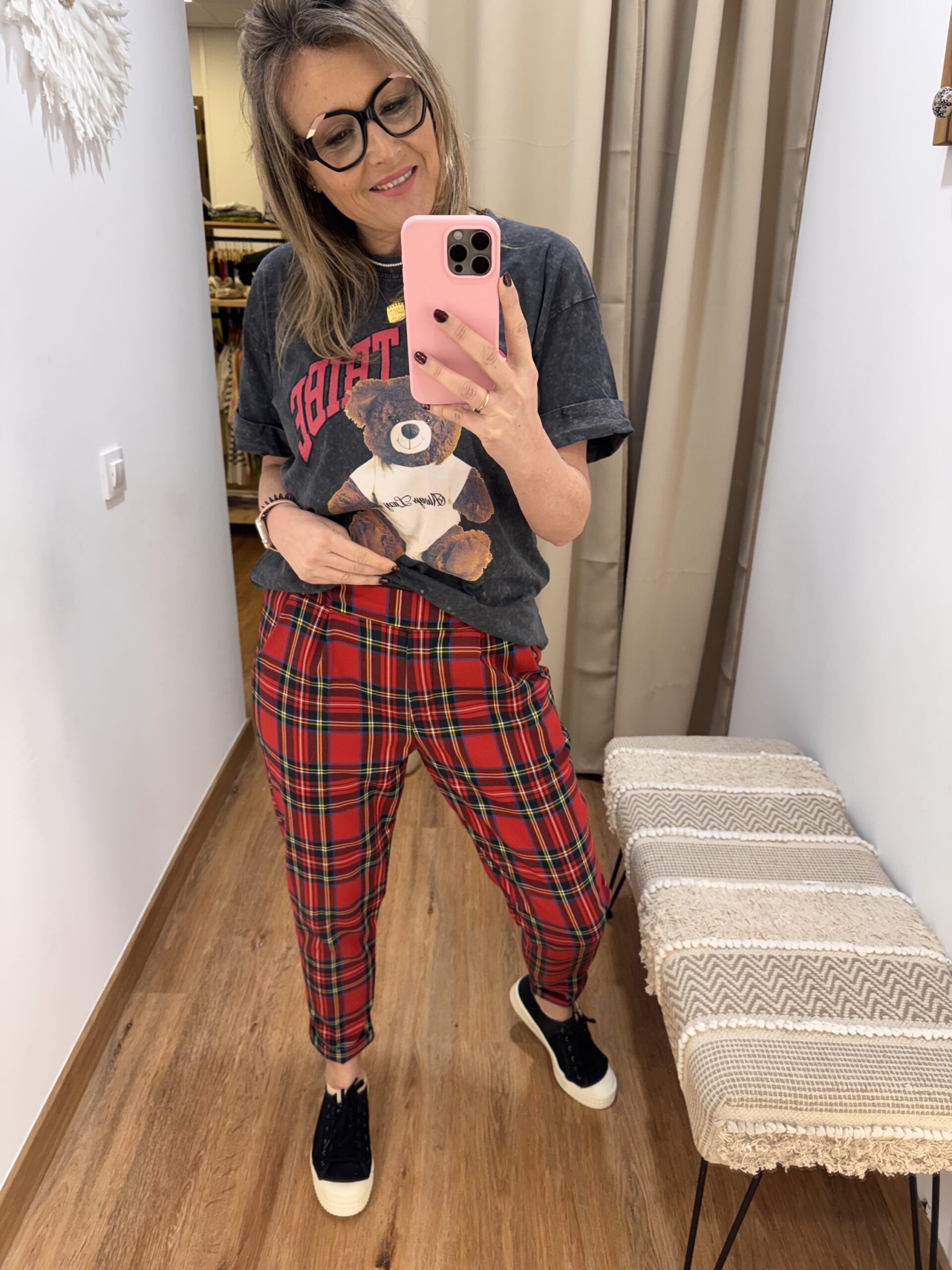 Pantalón estilo jogger con estampado de tartán. Elástico el la cintura y bolsillos laterales.