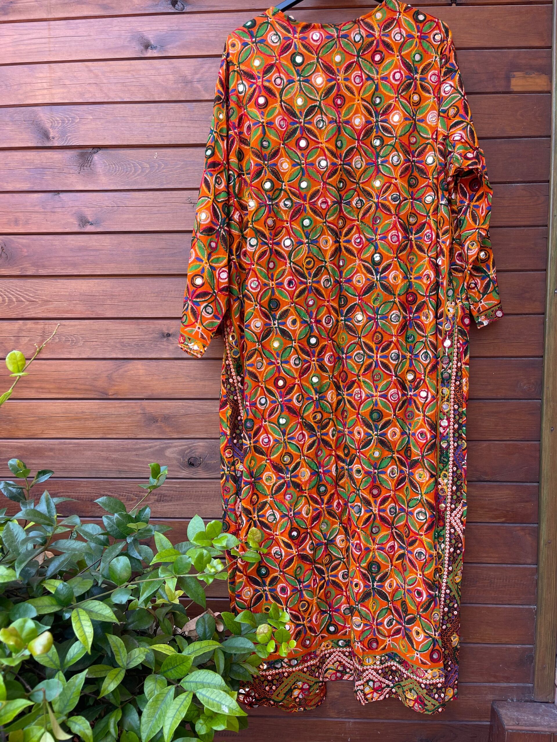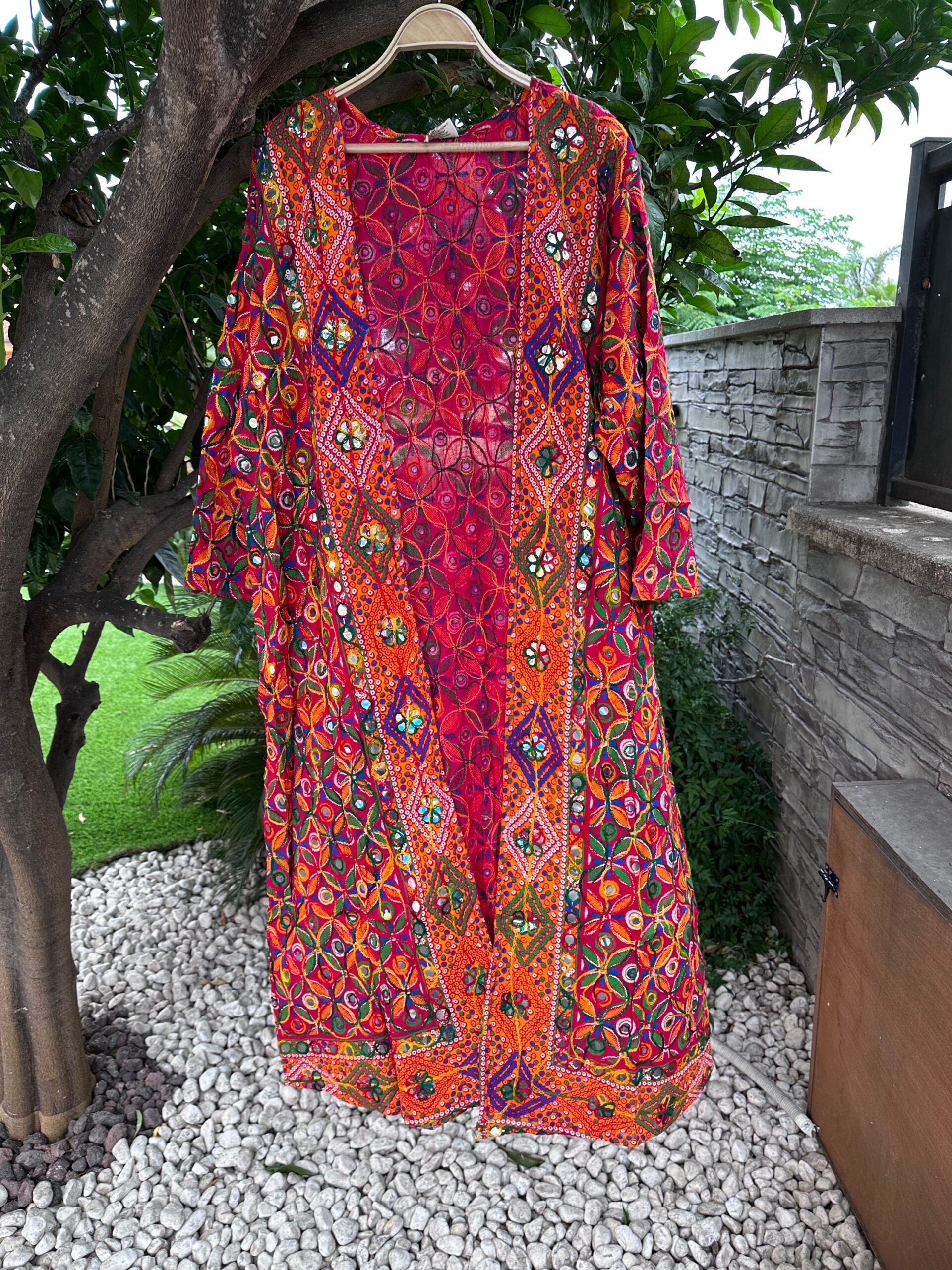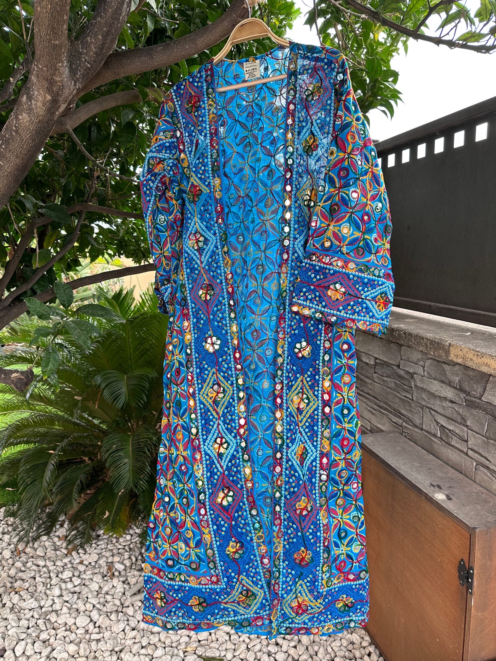 Destacan sus múltiples bordados con hilos de color sobre la base lisa y sus detalles brillantes. Disponible en varios colores.