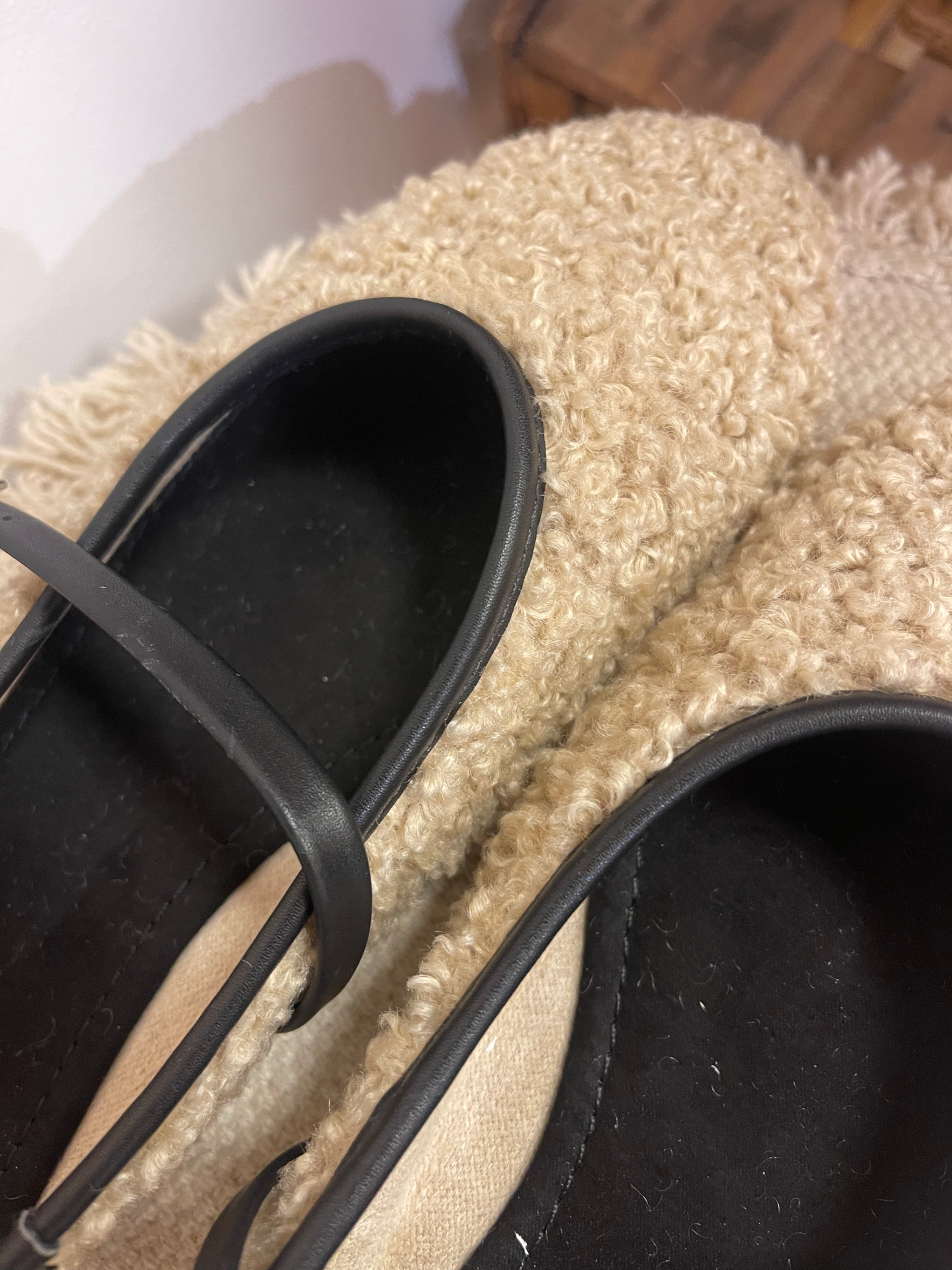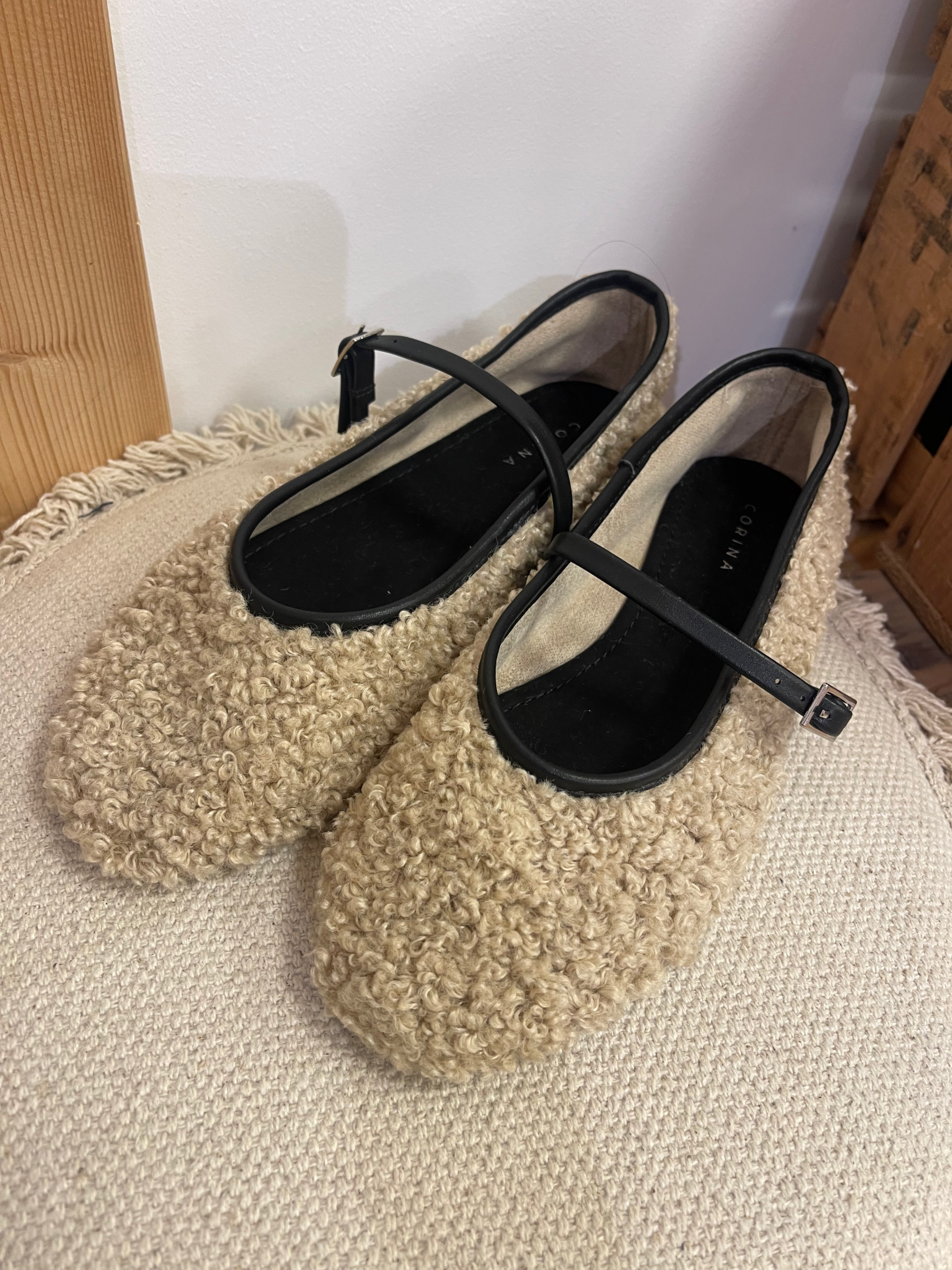 • Material exterior: Borreguito sintético beige