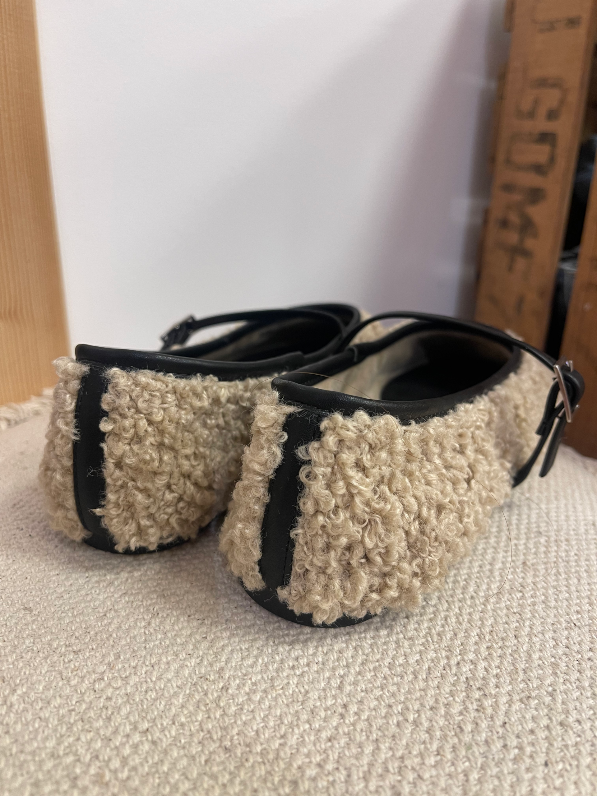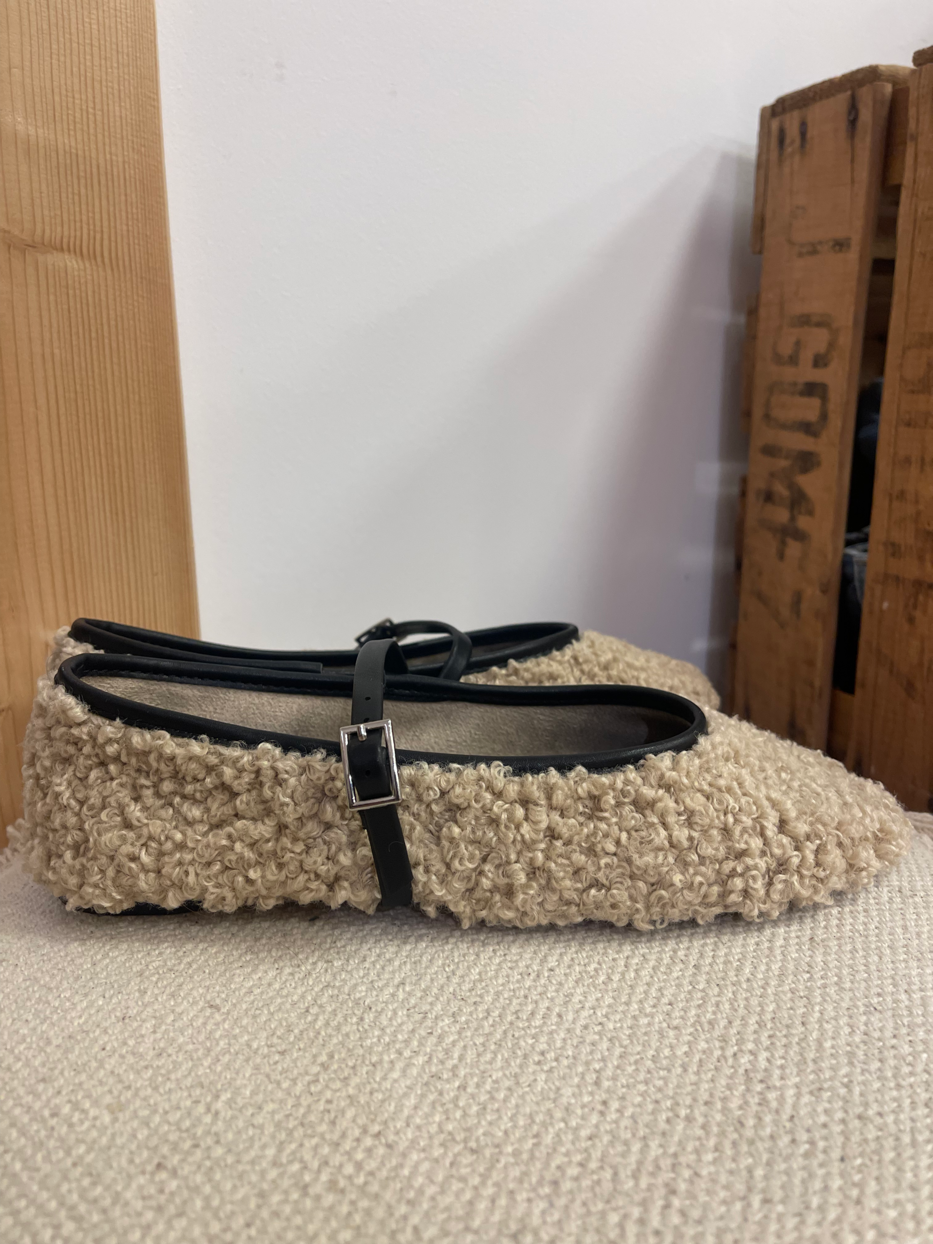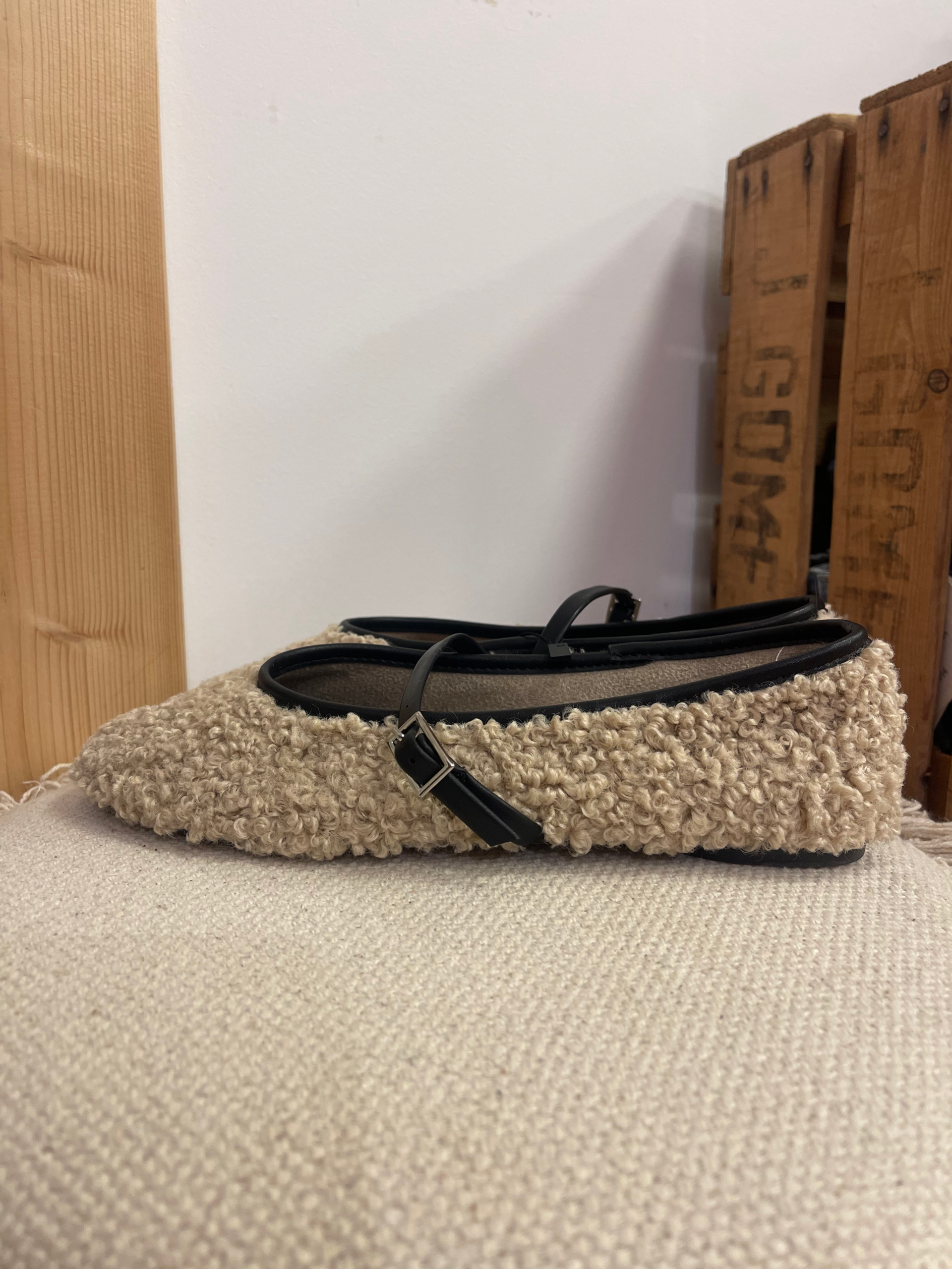 Aporta calidez y estilo a tus looks con este encantador zapato estilo Mary Jane confeccionado en suave borreguito beige, ideal para los días más frescos. Su diseño combina la ternura de la textura afelpada con un toque moderno gracias a la franja en el talón de polipiel negra, creando un contraste elegante y actual.