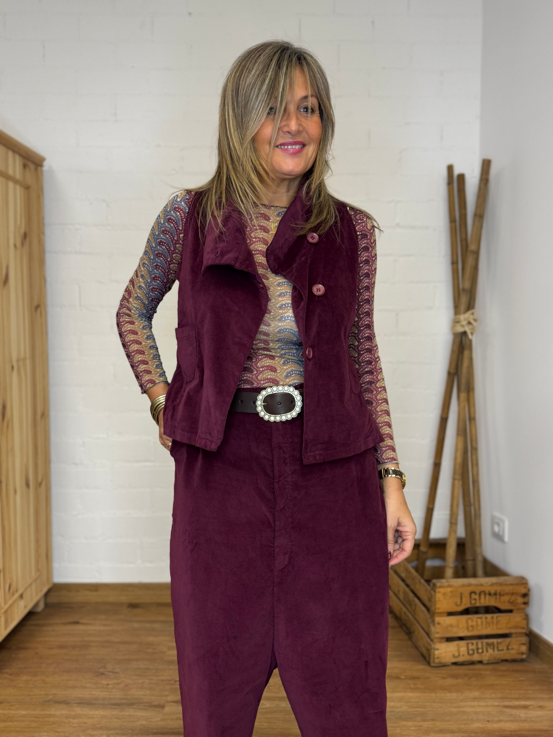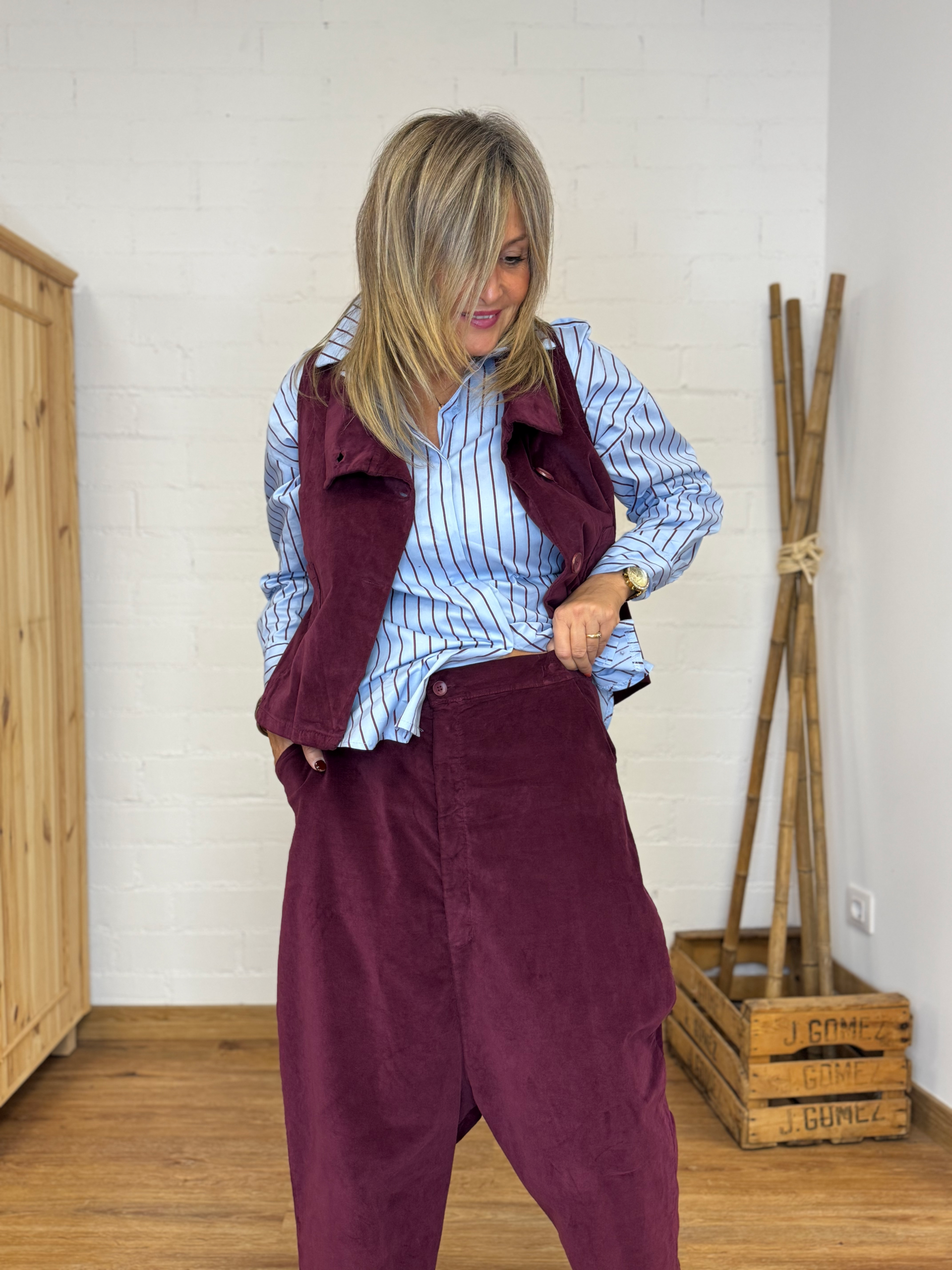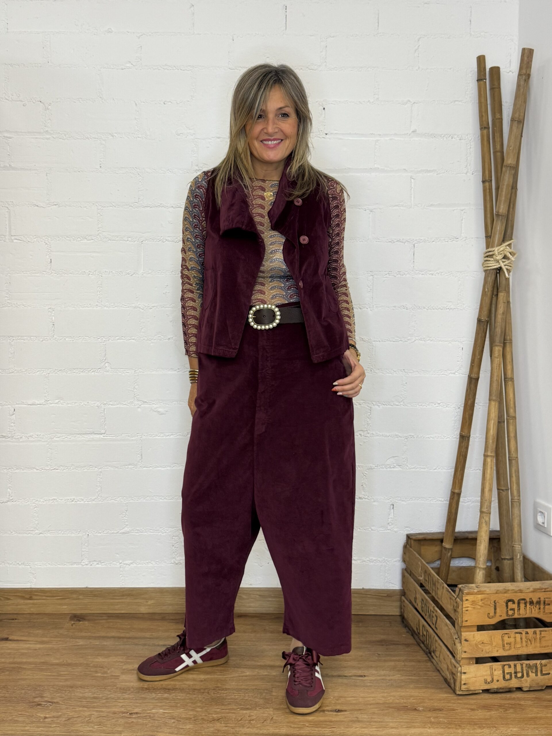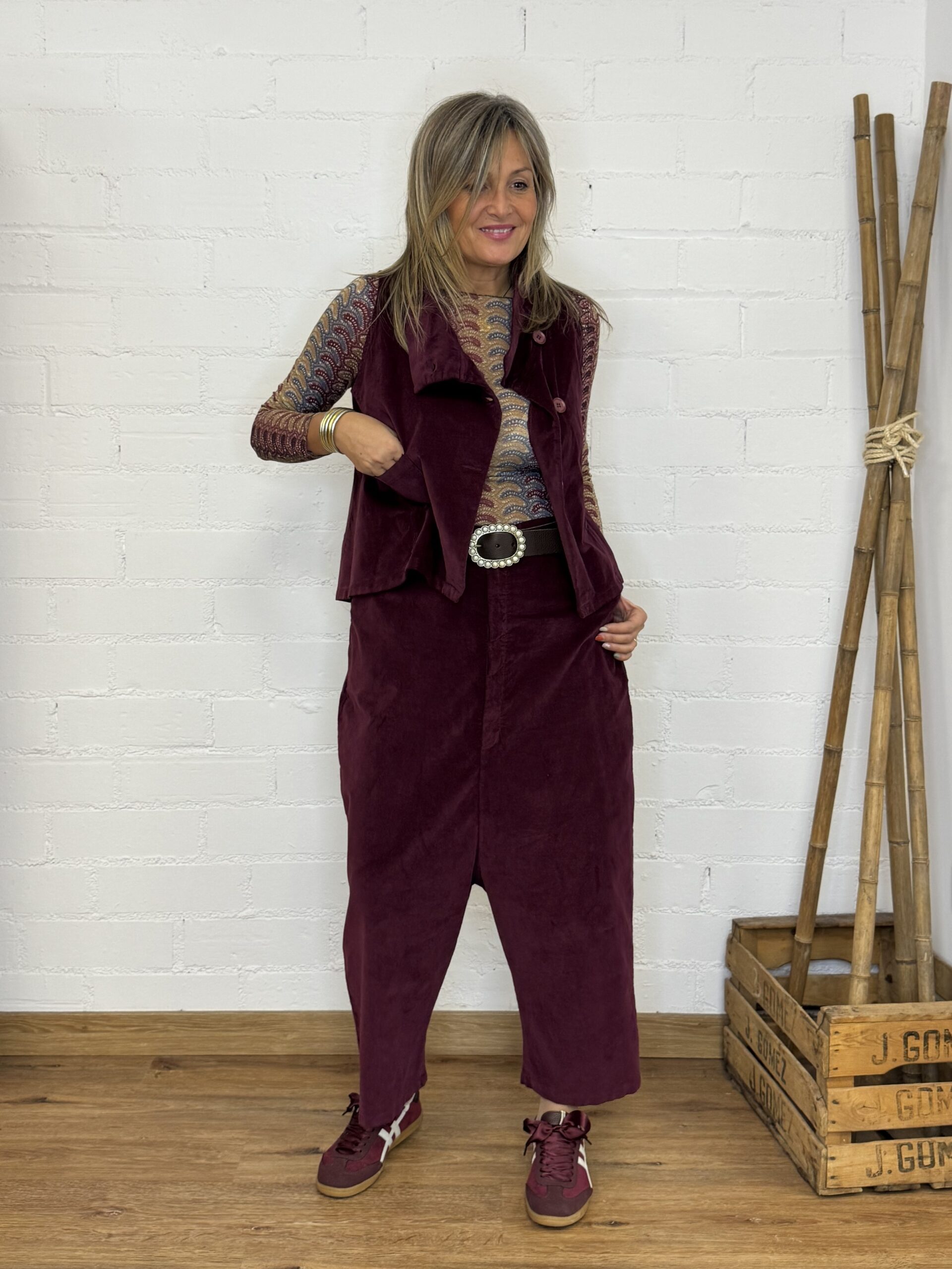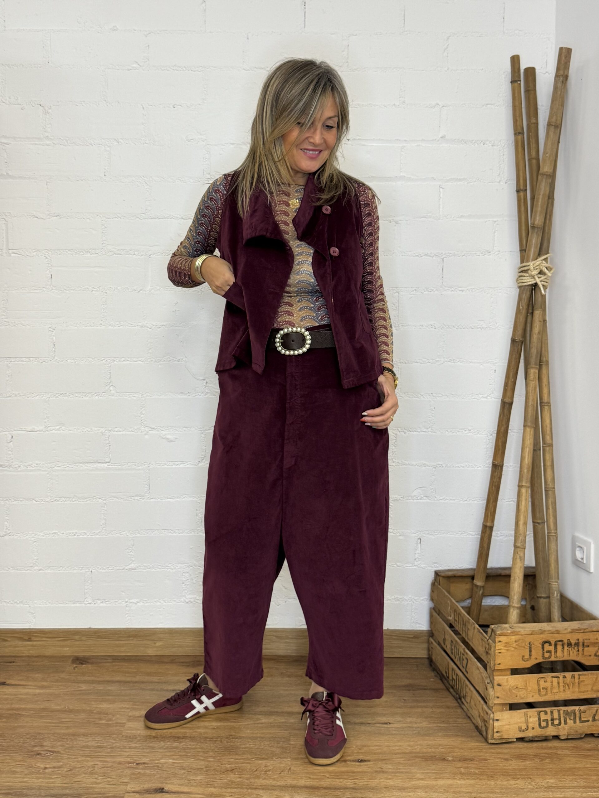 Este pantalón baggy combina comodidad y estilo en una prenda de textura exquisita. Confeccionado en un tejido de terciopelo muy suave, aporta un toque elegante y sofisticado a cualquier look.